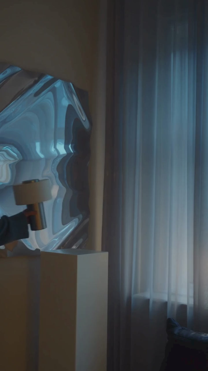 - Signature Detail: The top piece extends from the base, creating the impression of a continuous sculptural form flowing through the entire lamp.