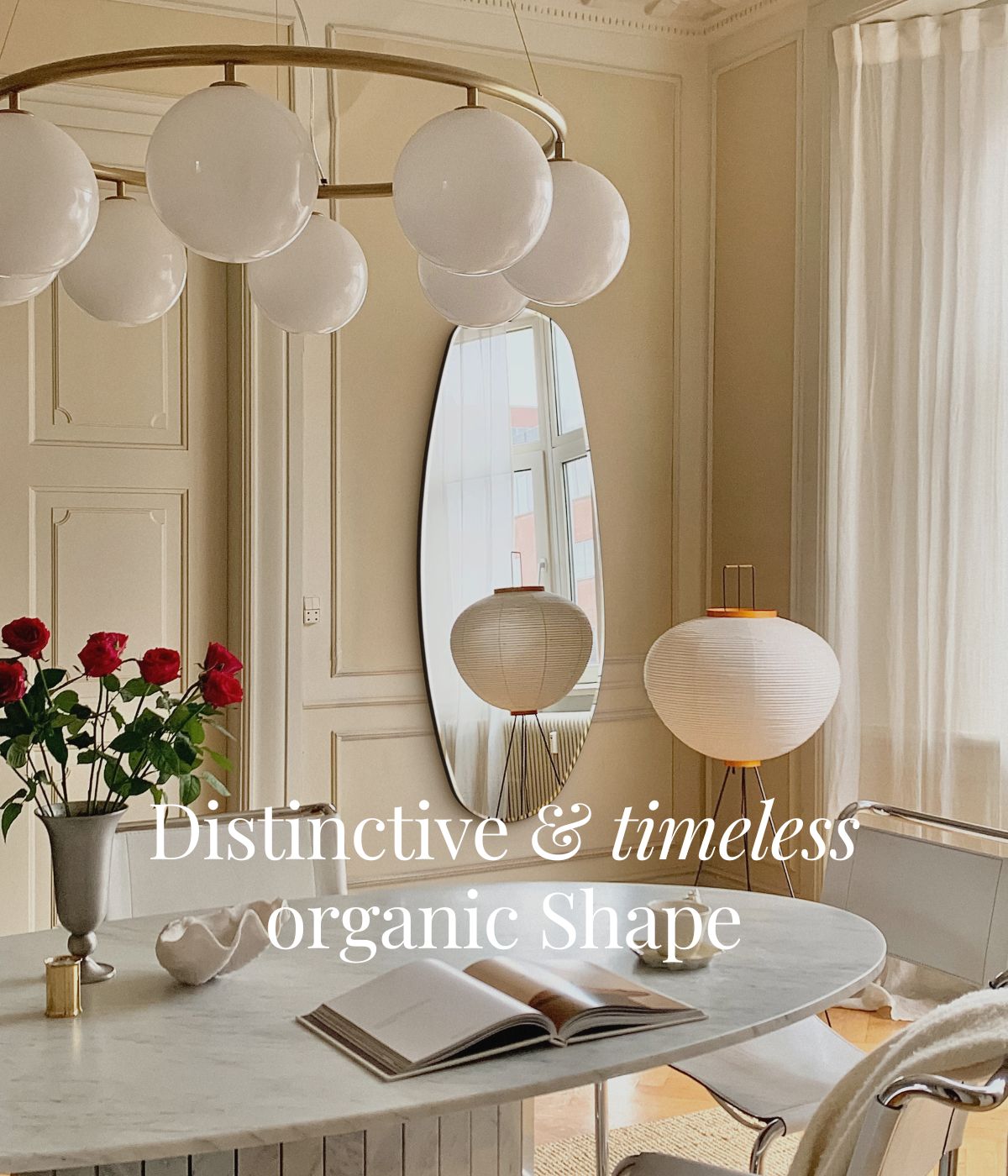 The opal mirror blends modern organic curves with a classic elegance, offering a refined and timeless addition to any space.